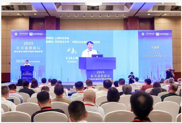 9月28日,2025东方法治论坛在上海举办。中国法学会党组书记、常务副会长王洪祥,全国工商联副主席、上海市政协副主席、市工商联主席寿子琪,上海市人民检察院党组书记、检察长陈勇等出席论坛并致辞。上海市法学会党组书记、会长姜平主持论坛开幕式。 王洪祥指出,上海市法学会以“一体两翼”工作格局为牵引,大力推进区法学会和专业研究会建设,着力培树“东方”系列学术品牌,有效发挥咨政建言作用,为平安上海、法治上海建设作出积极贡献。他强调,要把牢政治方向,准确领会、全面贯彻习近平总书记关于法治化营商环境的重要论述;加强理论研究,为在法治轨道上持续优化营商环境积极建言献策,提供更加系统、更具针对性的法学理论支撑和智力支持;深化法治实践,精准对接企业法律需求,积极开展法治宣传教育、参与涉外法治工作,以担当作为的实际行动推动法治化营商环境建设走深走实。上海市法学会要创新论坛机制,广泛凝聚智慧力量,搭建高效转化平台,发挥示范引领作用,为在法治轨道上全面深化改革、推进中国式现代化作出新的更大贡献。 2025东方法治论坛由上海市法学会主办,华东政法大学、中国法治化营商环境研究院协办,以“持续优化营商环境的法治促进”为主题,邀请法学法律界、高校科研机构和职能部门的权威专家学者进行精彩演讲和对话。来自相关省市法学会,以及法学法律界、相关职能部门、企业界等方面嘉宾参会。